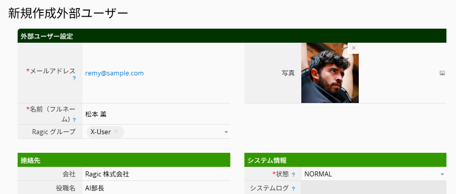 外部ユーザーのリクエストがRagicチームによって承認されると、アカウント設定の外部ユーザーページに移動し、+新規作成をクリックして外部ユーザーを追加することができます。