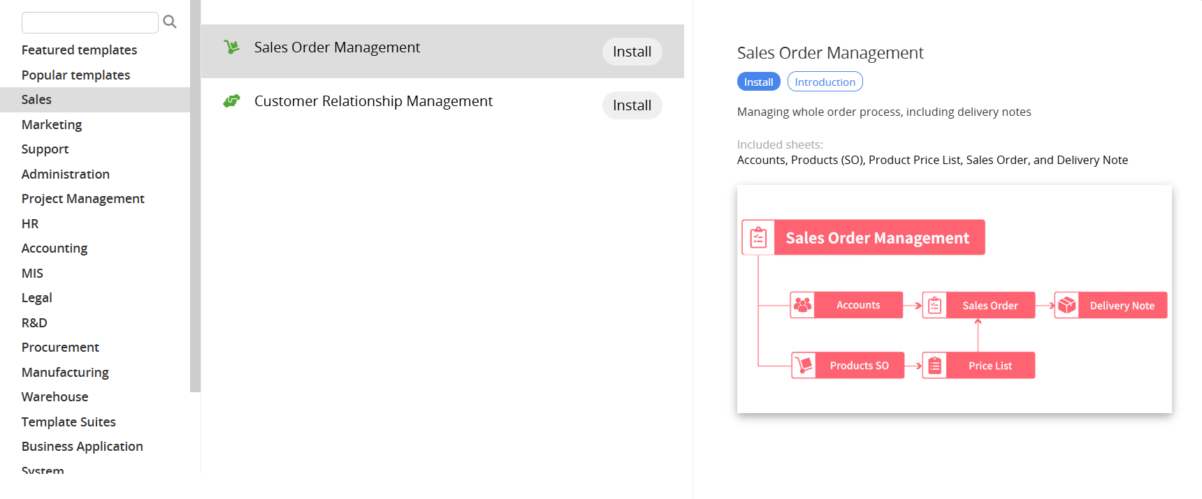 If you are already a Ragic user, you can find the "Customer Relationship Management" template under the "Sales" category in Install Templates and click "Install" to download it.