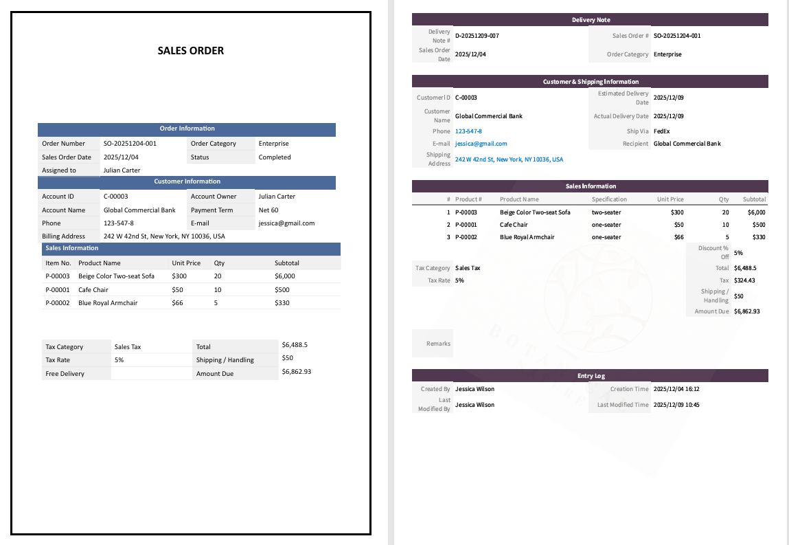 Currently, only docx templates are supported. It is recommended to start by downloading the default template from the Custom Print Report settings page before making manual adjustments. You can then modify the table's background color, borders, positions, and add titles, text, or images as needed. Be aware of the different syntax for independent fields and subtable fields when adding or removing fields.