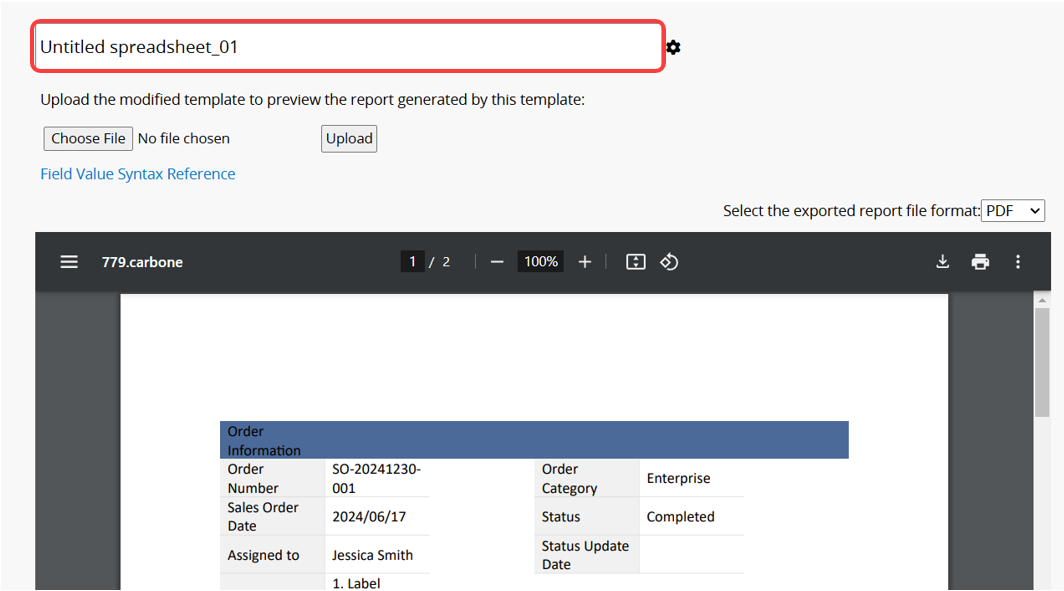2. When a sheet has too many fields and the width is excessive, the downloaded template may not show fields that extend beyond the page. Please refer to the Field Value Syntax Reference to add fields to the template.