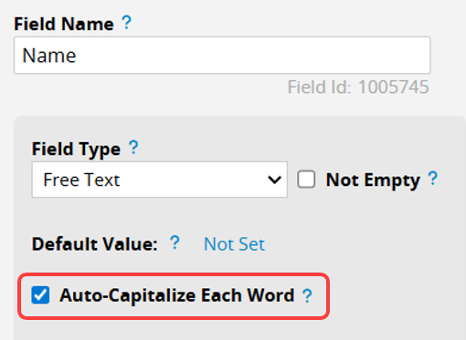 When enabled, text entered in this field will automatically be formatted so each word starts with an uppercase letter.