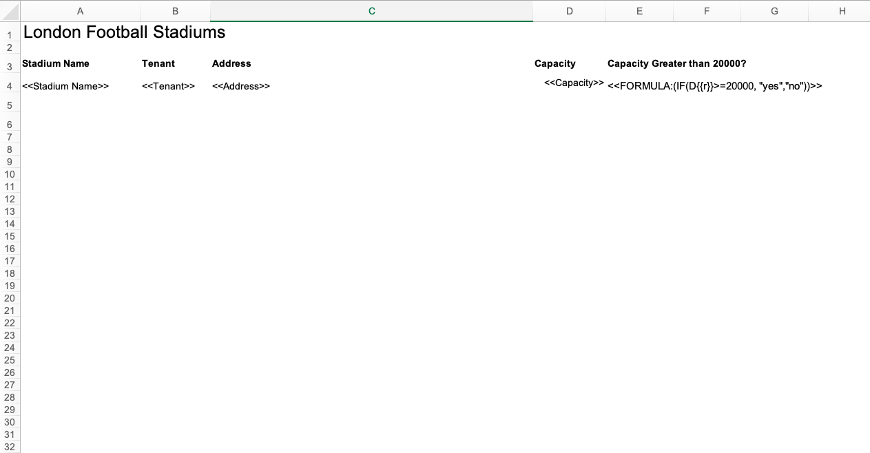 For instance, if you want to check whether the capacities of these stadiums are greater than 20,000, you can use this function in the template: