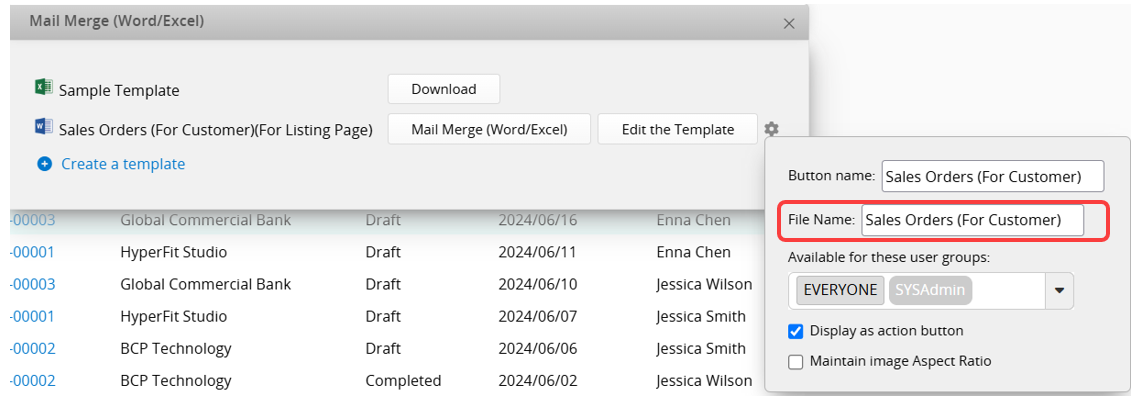 In Ragic, you can use Mail Merge to export records into customized Excel or Word formats, such as exporting "Sales Orders" into your company's standard format.