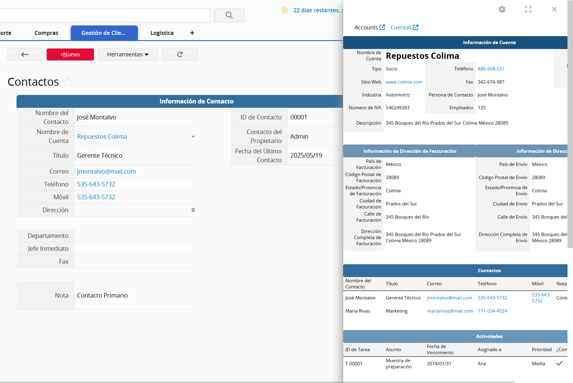 Igualmente, si agregas la información de contacto directamente desde la subtabla en la hoja Cuentas, la información agregada también se mostrará como un nuevo registro en la hoja Contactos.