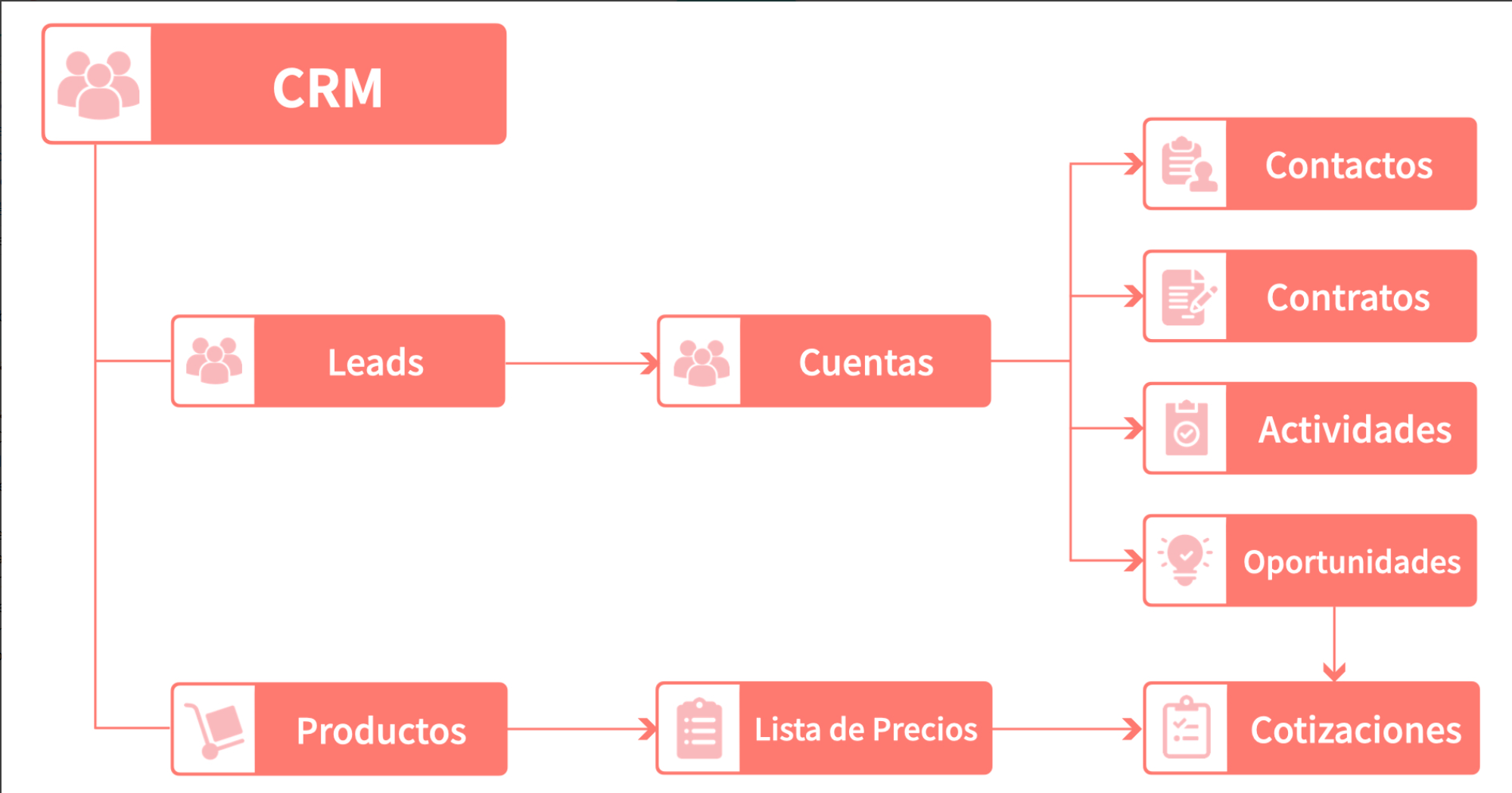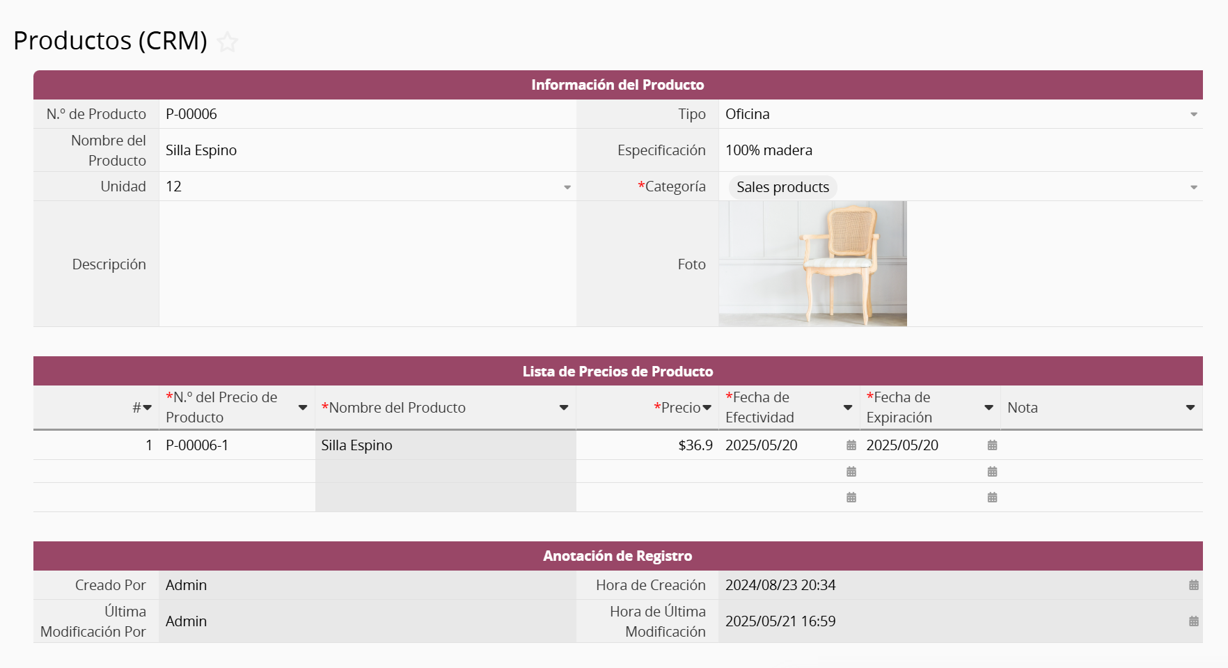 1. Productos (CRM), donde un producto es guardado como un registro.