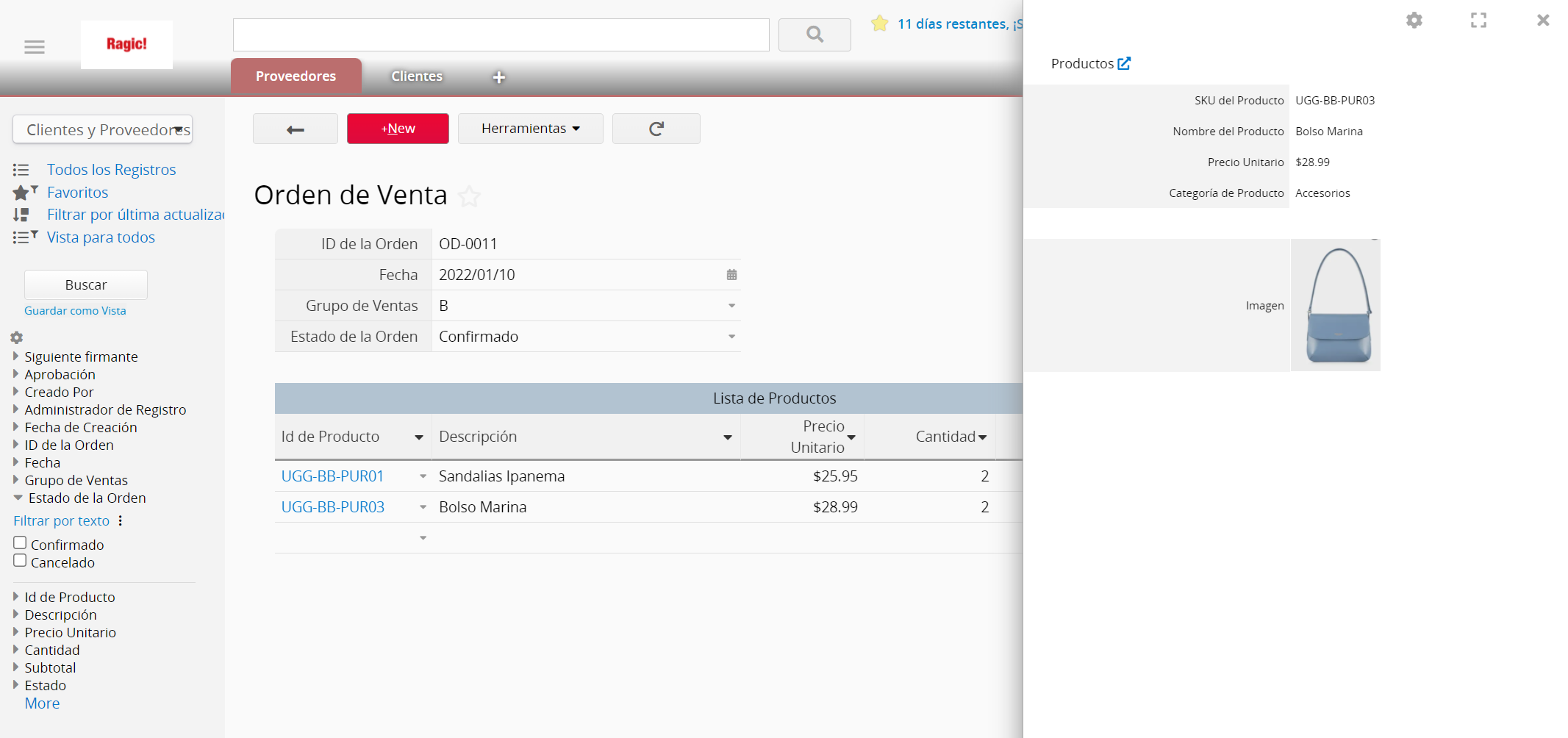 La razón es que el enlace entre “Órdenes de Venta” y la hoja “Productos” es creado a través de un campo de subtabla “Nombre del Producto”.