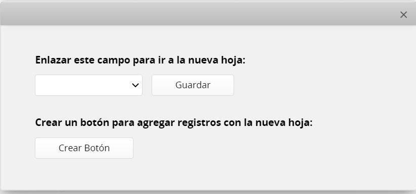 Haz clic en Crear botón “actualizar valor en otra hoja”, se te indicará que agregues un nombre al botón, el cual será agregado a tus “Acciones”, visible en la esquina inferior derecha de cada página de formulario de cada registro.