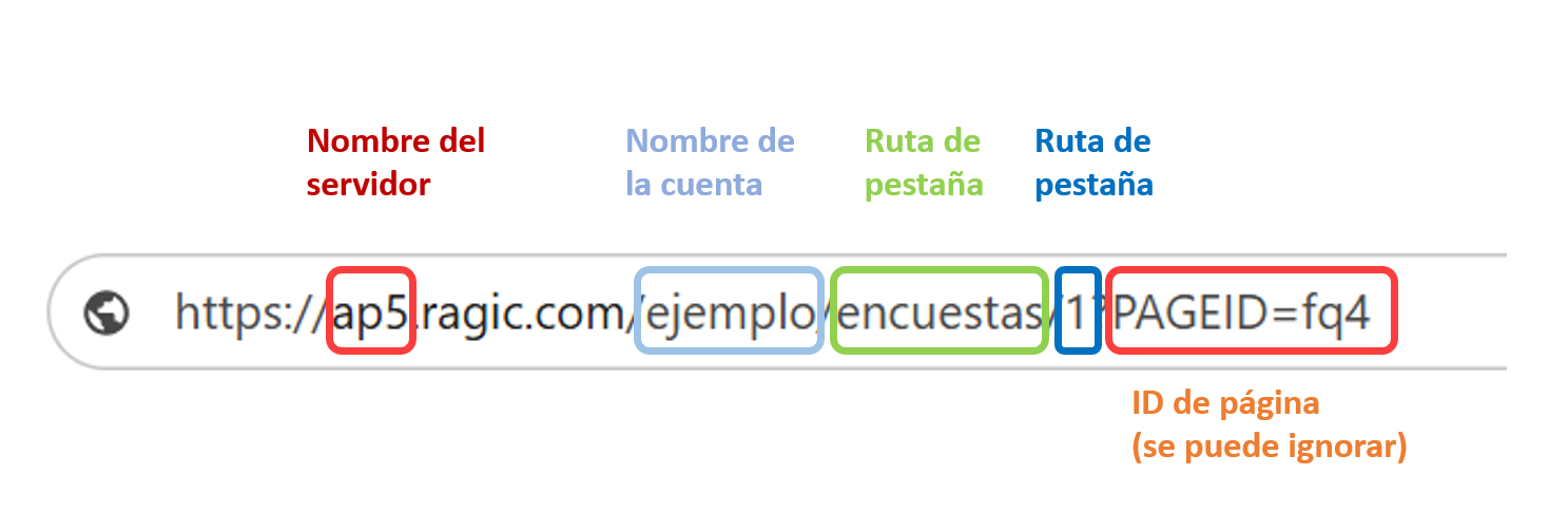 [Nombre del servidor].ragic.com/[Nombre de la cuenta]/[Parámetro de la ruta de la pestaña]/[Parámetro de la ruta de la hoja]?[ID DE PÁGINA].