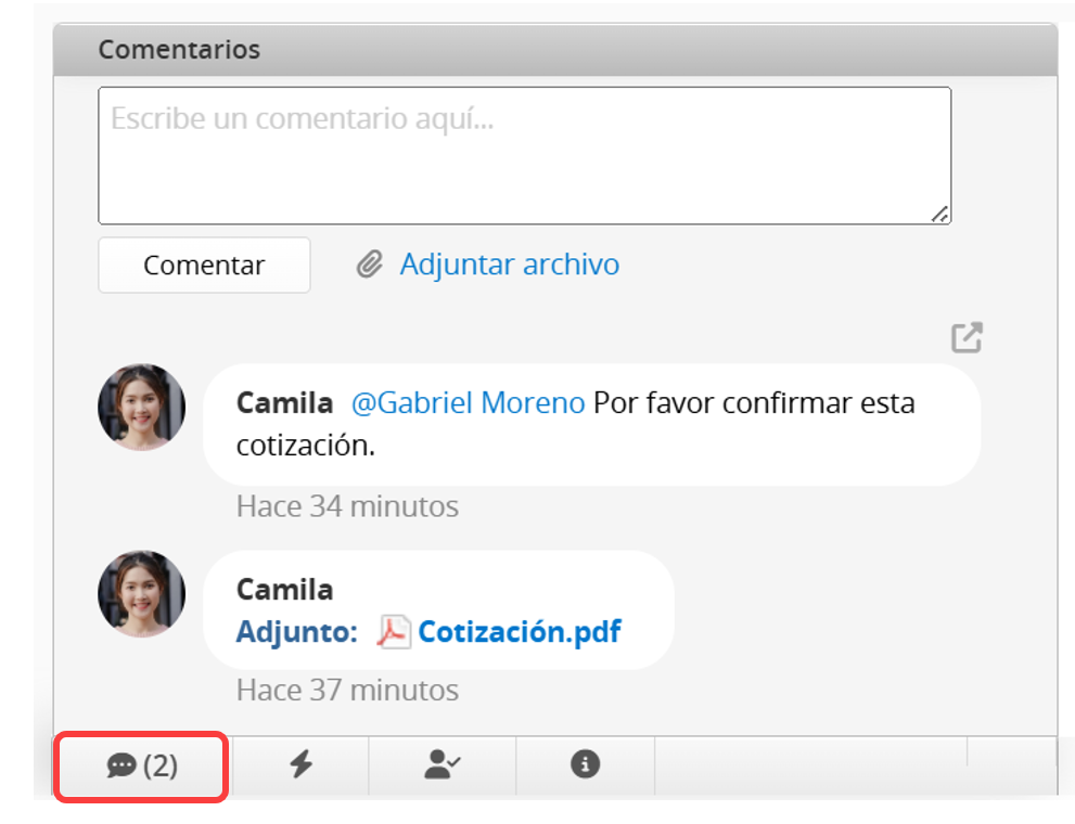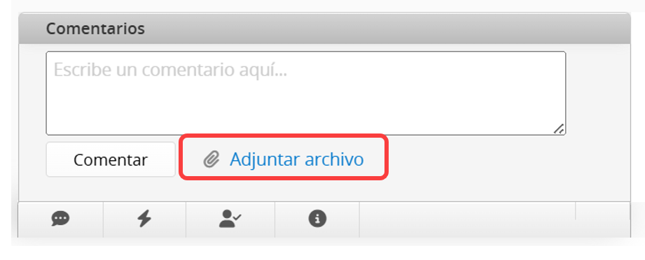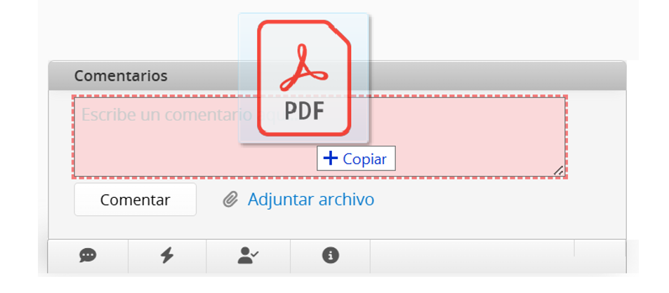 Puedes hacer clic en Adjuntar archivo o arrastrar y soltar un archivo en el cuadro de comentarios para adjuntarlo.
