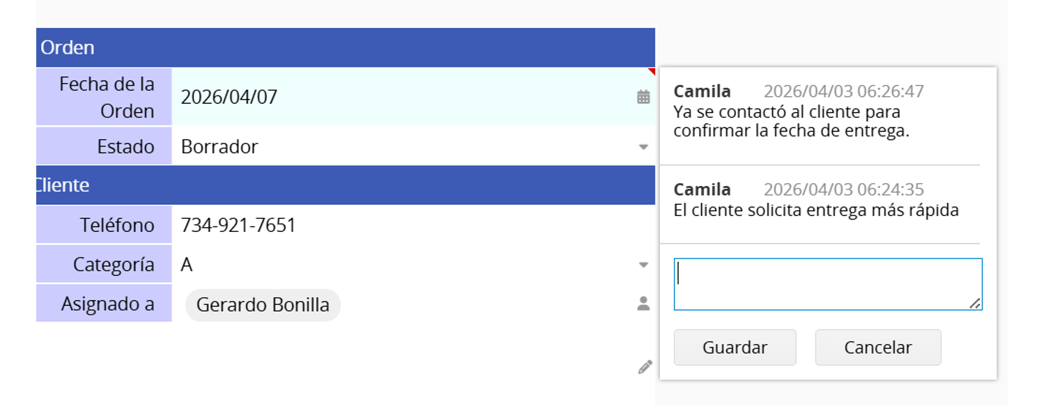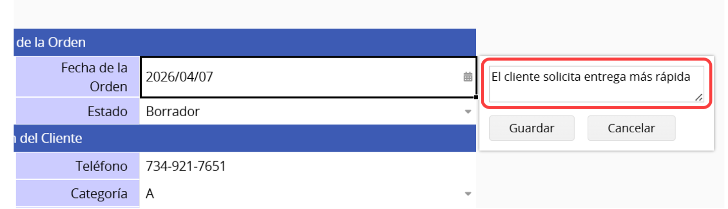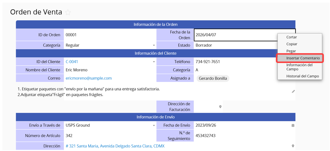 Mientras visualiza un registro en la página del formulario, puede agregar comentarios a cualquier campo.