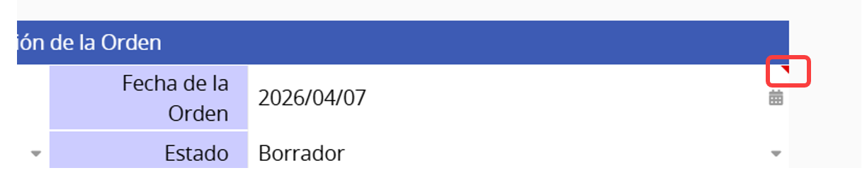 Una vez guardado, aparecerá un triángulo rojo en la esquina superior derecha del campo.