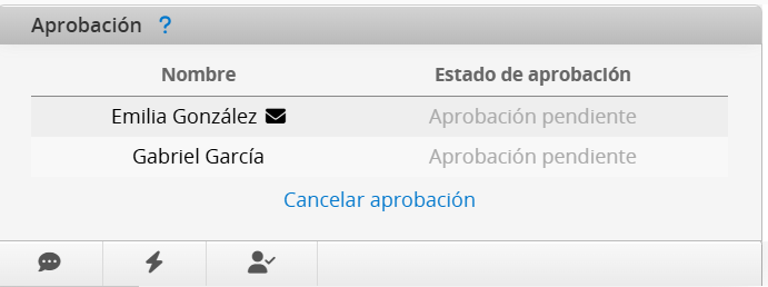 El "estado de aprobación" indicará si la aprobación o el rechazo lo realiza un usuario suplente.