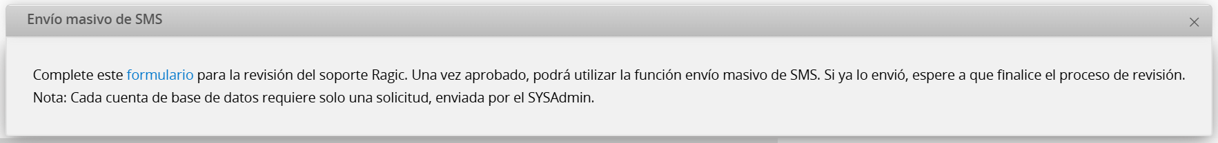 La función de Envío Masivo de SMS está disponible si estás suscrito a nuestro Plan Profesional o un plan superior. Si no puedes ver esta función, por favor contacte a su SYSAdmin.