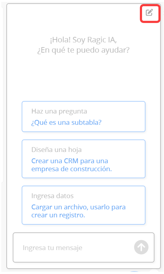 de la esquina superior derecha de la página iniciará Ragic IA.