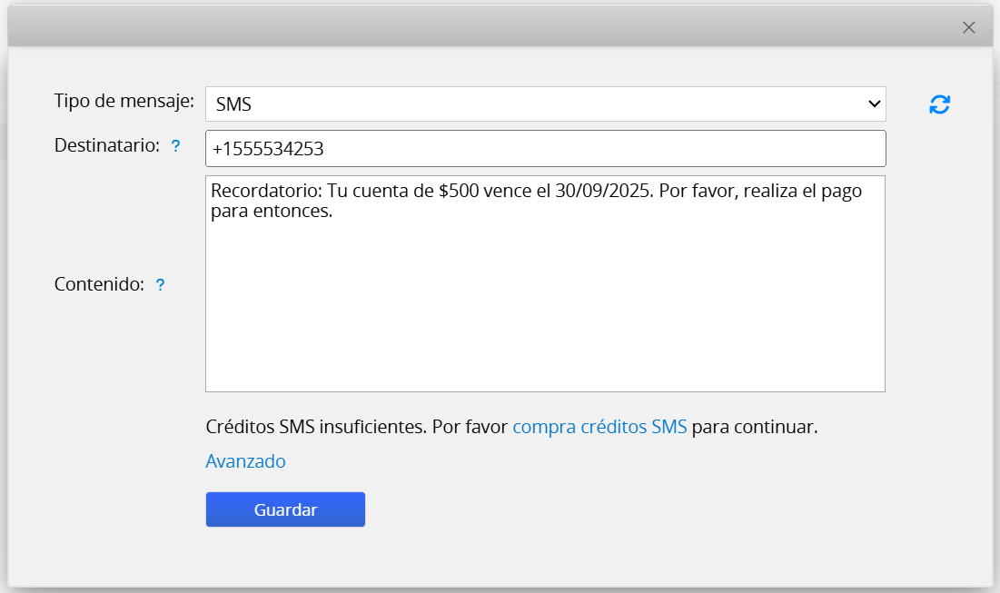 Esta función solo está disponible para usuarios con el Plan Profesional o superior y requiere la compra de Créditos SMS.