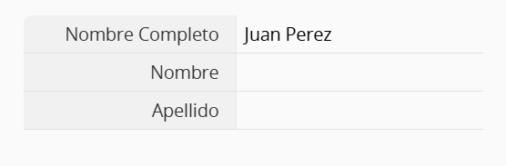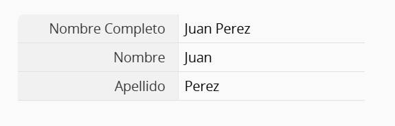 Por ejemplo, el valor del campo "Nombre completo" es "Juan Perez".