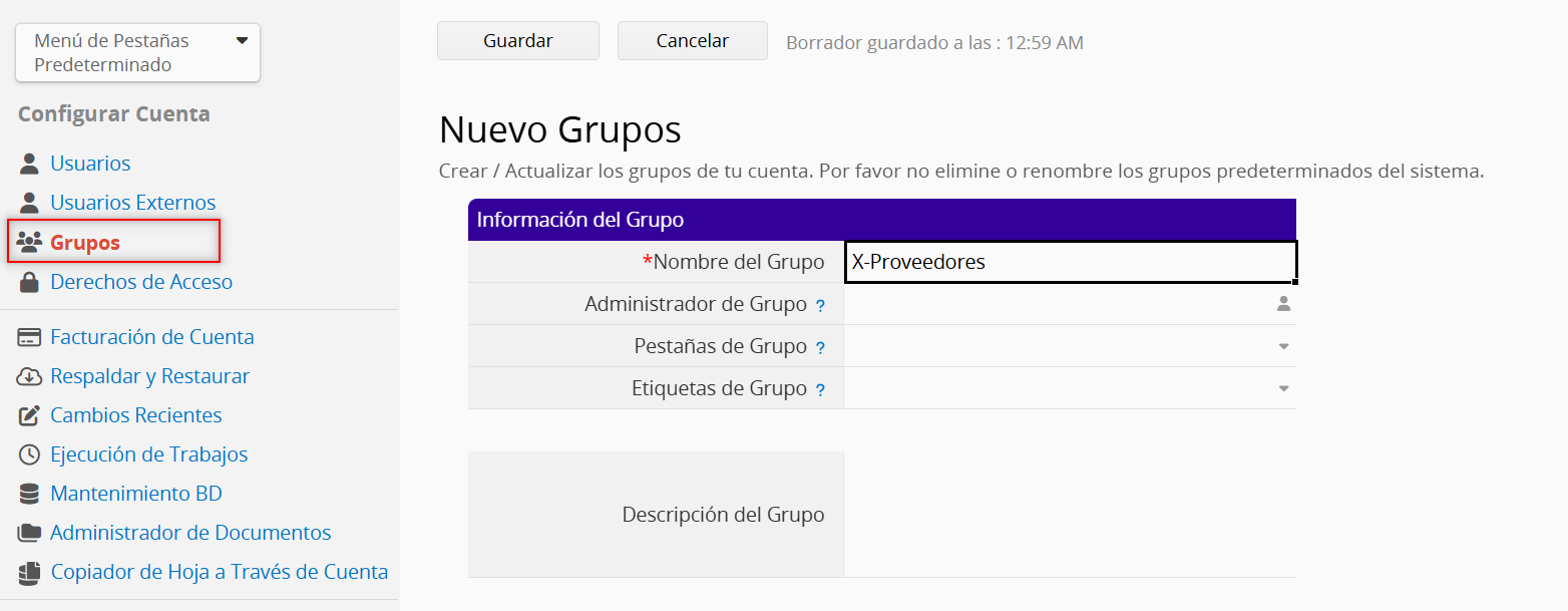 Puedes agregar tus propios grupos de usuarios con nombres que inicien con una X-, en la hoja de grupos de usuarios.