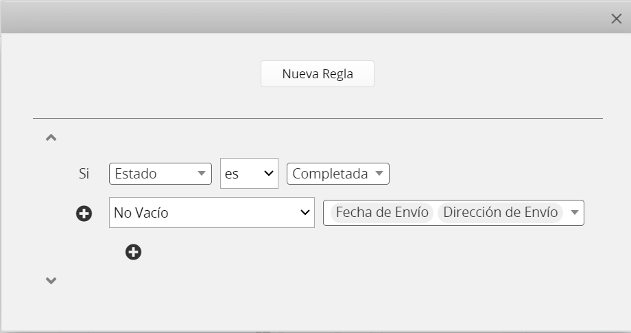 (a) Si un campo está configurado como No vacío u Oculto, no puedes seleccionar el mismo campo para que esté No vacío u Oculto/Mostrado en la configuración de Formato Condicional.