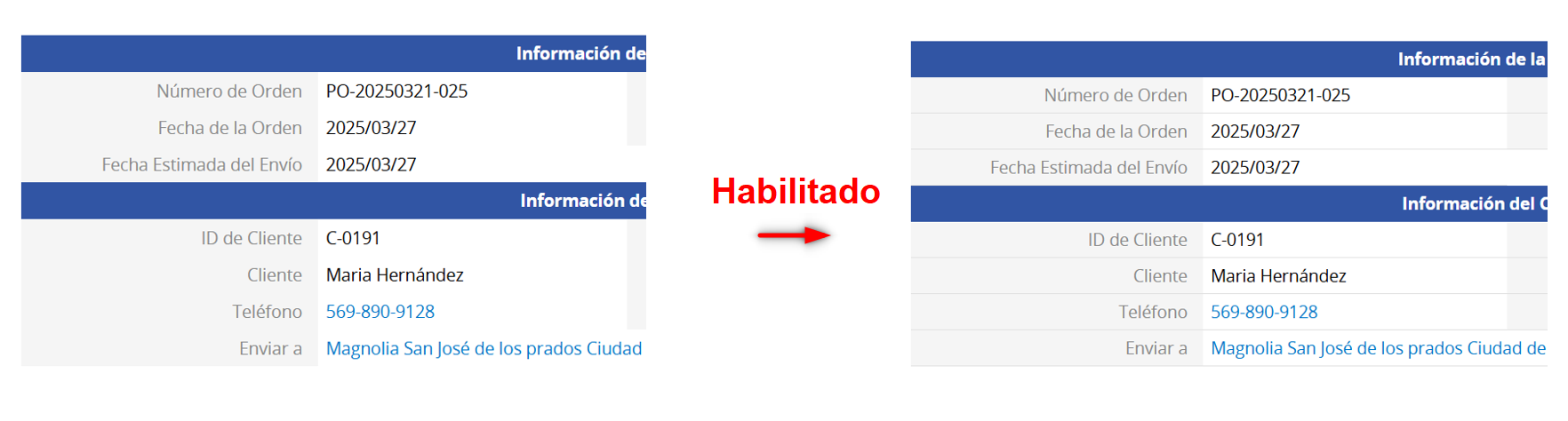 | Crear detalles en historial | Mostrar el historial de edición en el panel de información del registro. |