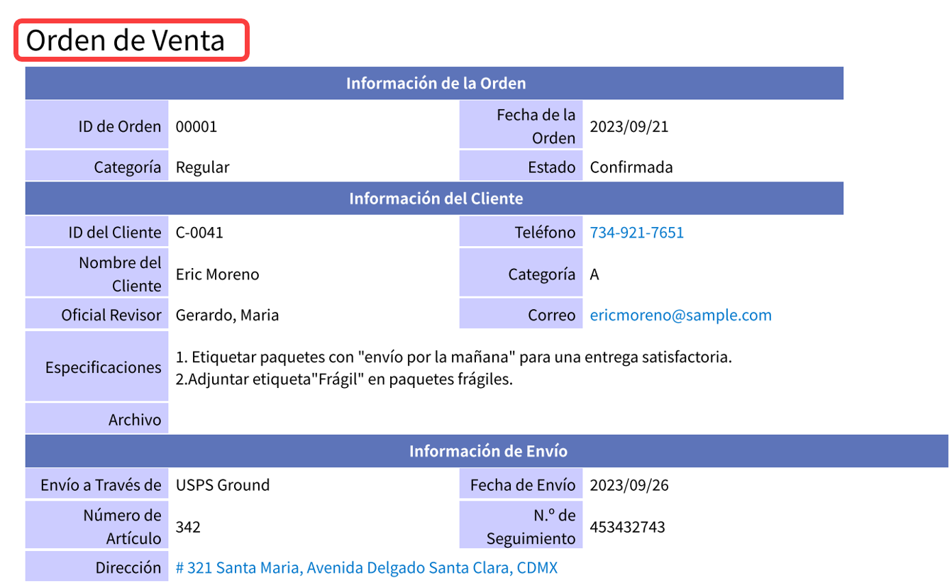 Nota: puedes cambiar el campo título al seleccionar un campo desde el menú desplegable. Tenga en cuenta que debe seleccionar un campo con valores únicos, tales como “Número de Orden” o “ID del cliente”.