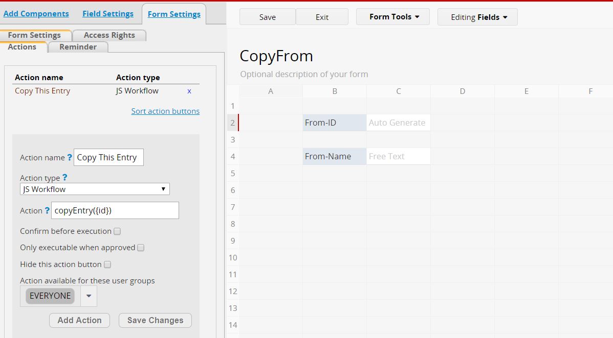 var recordId = param.getNewNodeId(key_field_id_of_form); var query = db.getAPIQuery(path_to_form); var record = query.getAPIEntry(id); // utiliza el registro recuperado como desees