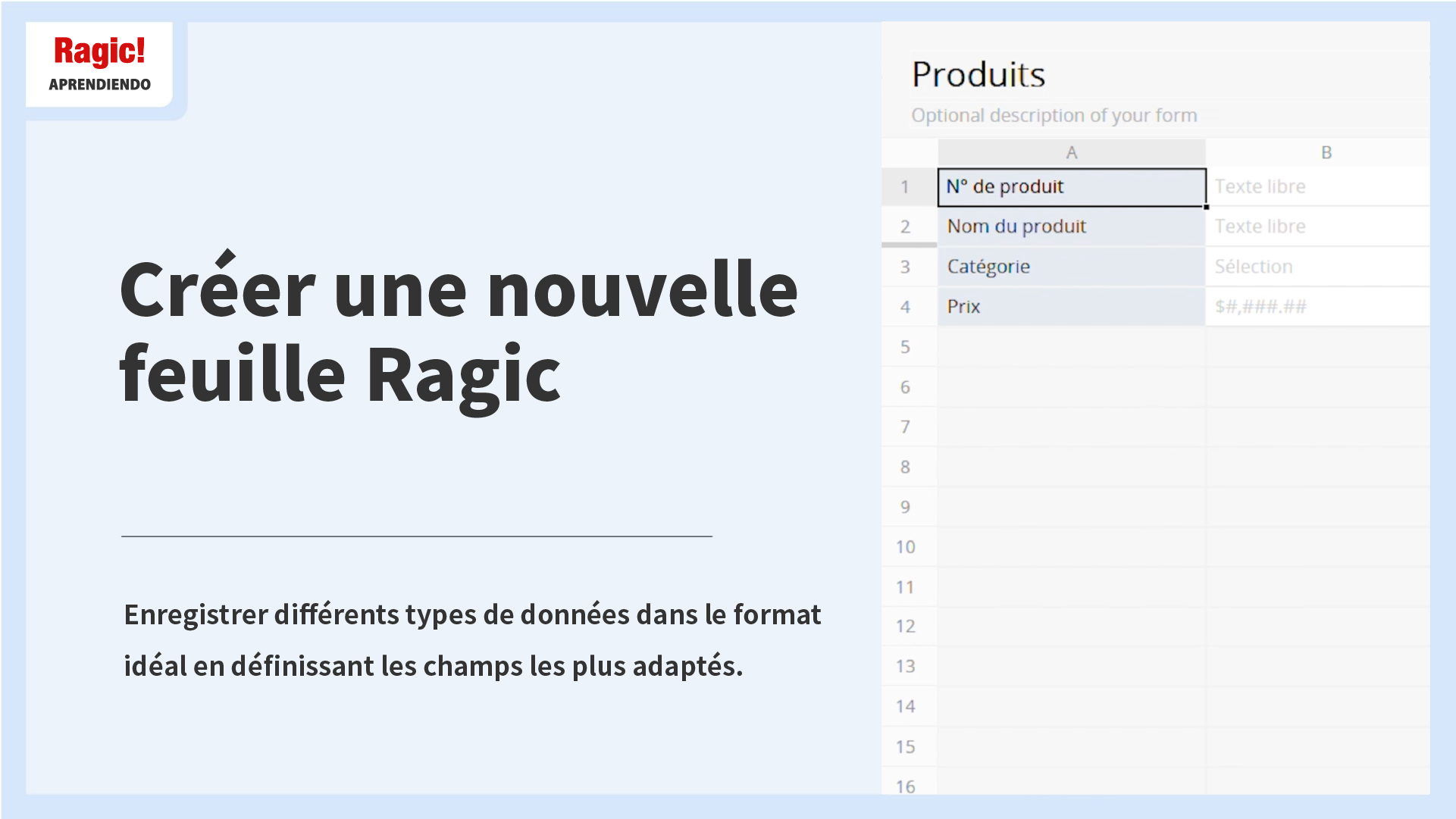La première étape pour créer votre base de données Ragic consiste à créer des feuilles personnalisées dans lesquelles vous allez stocker et traiter les données. Ce tutoriel vous guidera dans les différentes étapes à suivre pour la conception d'une feuille adaptée à vos besoins.