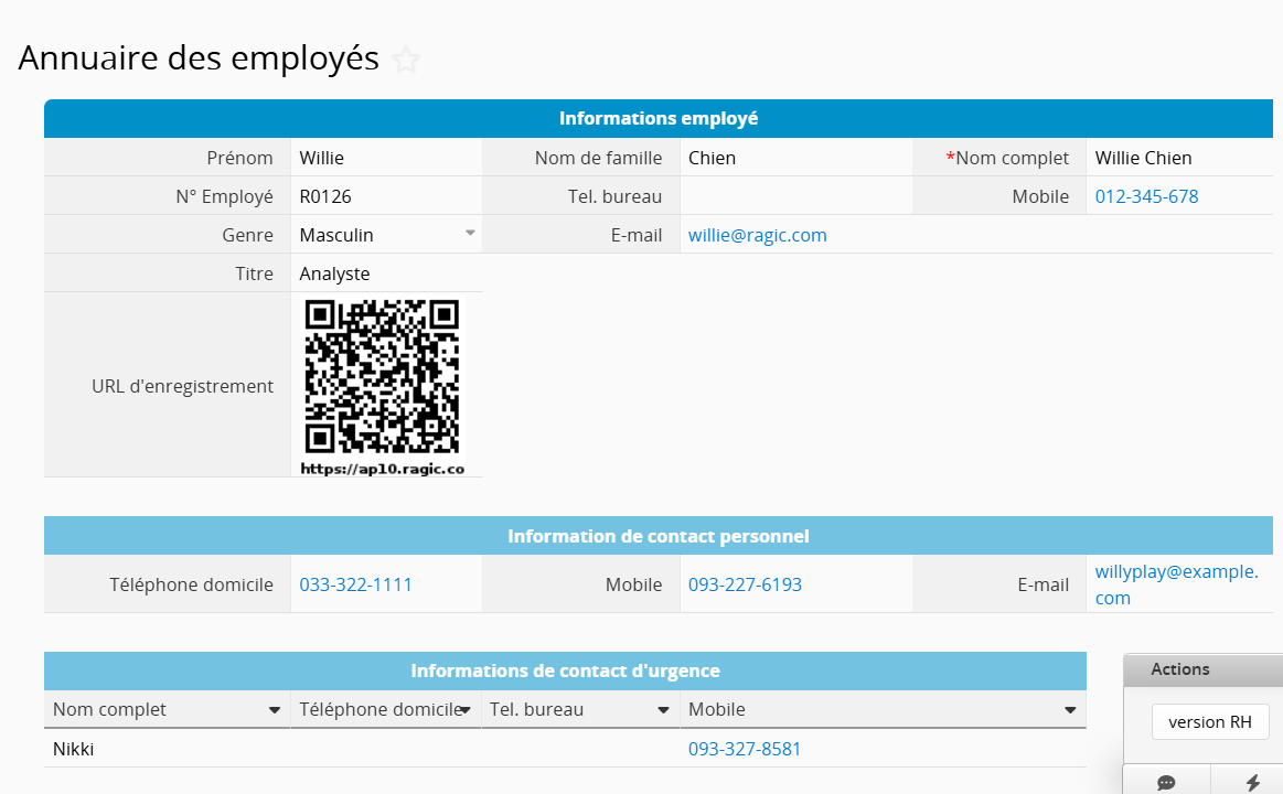 Si vous avez installé l’application Ragic et que vous souhaitez partager un seul enregistrement, il existe une méthode plus pratique. Ouvrez simplement l’application, accédez à l’enregistrement, cliquez sur l’icône du code QR en haut, et un code QR prêt à être partagé directement apparaîtra. Cliquez sur "Partager" et envoyez-le au destinataire.