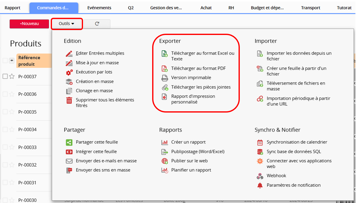 Si vous devez imprimer un grand nombre de codes-barres en une seule fois, vous pouvez utiliser la fonctione “Exporter” pour transférer les données vers le logiciel de votre imprimante d’étiquettes. La plupart des imprimantes d’étiquettes prennent en charge les fichiers CSV ou XLSX pour générer des étiquettes. Exportez simplement depuis Ragic les champs nécessaires dans le format requis, puis importez le fichier dans le logiciel de votre imprimante d’étiquettes. Vous pourrez ainsi imprimer vos étiquettes de codes-barres directement depuis l’imprimante.