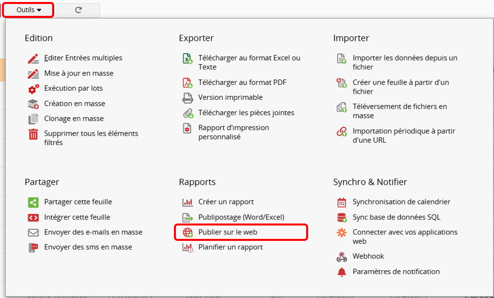 Si vous ne souhaitez pas exporter et importer manuellement les fichiers à chaque impression, et si le logiciel de votre imprimante prend en charge l’impression à partir d’un fichier Excel ou CSV téléchargé, vous pouvez utiliser la fonction “Publier sur le web”. Il vous suffit de fournir au logiciel de l’imprimante le lien de téléchargement généré par Ragic. Vous n’aurez alors plus besoin de télécharger ou réimporter manuellement les fichiers à chaque impression.