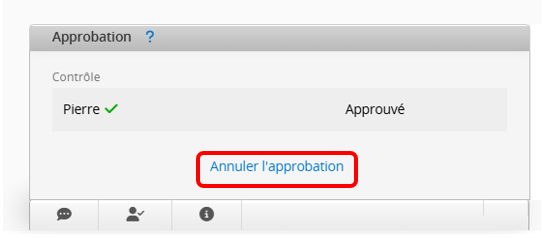 Si un enregistrement doit être modifié pendant ou après le processus d'approbation, un utilisateur disposant de droits d'accès suffisants doit cliquer sur Annuler l'approbation. Si l'option "Verrouiller l'enregistrement lorsque l'approbation débute" est activée, l'enregistrement se déverrouille automatiquement lors de l'annulation. Une fois les modifications effectuées, l'enregistrement peut être soumis à nouveau pour approbation.
