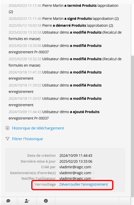 Si d'autres facteurs empêchent l'annulation de l'approbation et le déverrouillage, vous pouvez cliquer manuellement sur Déverrouiller l'enregistrement en bas à droite.