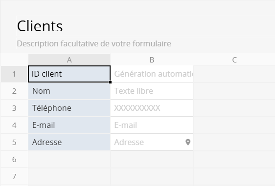 Pour reprendre l’exemple ci-dessus, si les informations d’un client sont stockées dans un seul enregistrement et que le client dispose de plusieurs personnes de contact, il est approprié d’utiliser une sous-table afin d’enregistrer plusieurs personnes de contact pour un seul client :