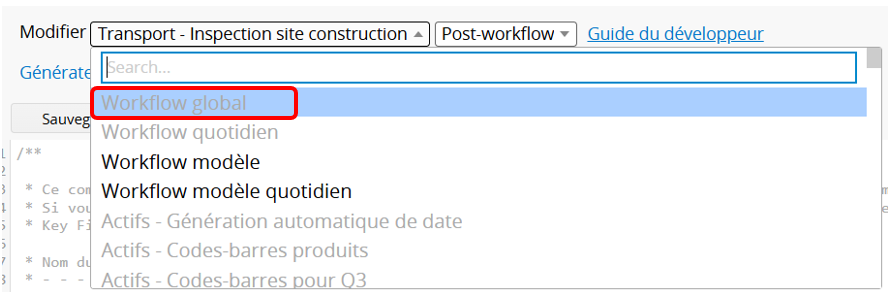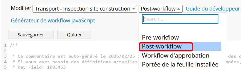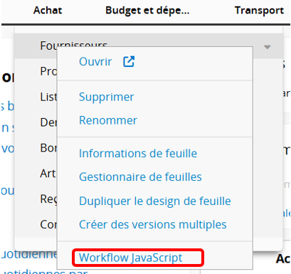 Faites un clic droit sur le nom de n’importe quelle feuille et sélectionnez Workflow Javascript.