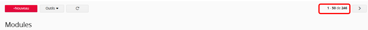 Sur la page liste, si aucune condition de filtre n’est appliquée, le nombre total d’enregistrements est affiché directement (enregistrements sur la page actuelle / nombre total d’enregistrements).