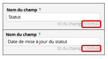 | Champ | Nom du champ | ID du champ |