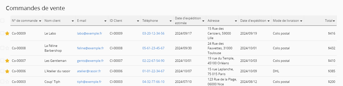 Quand vous avez des commandes importantes, que vous devez effectuer le suivi de tickets de support ou que vous avez des tâches urgentes à surveiller, vous pouvez cliquer sur l'icône en forme d'étoile pour marquer une entrée.