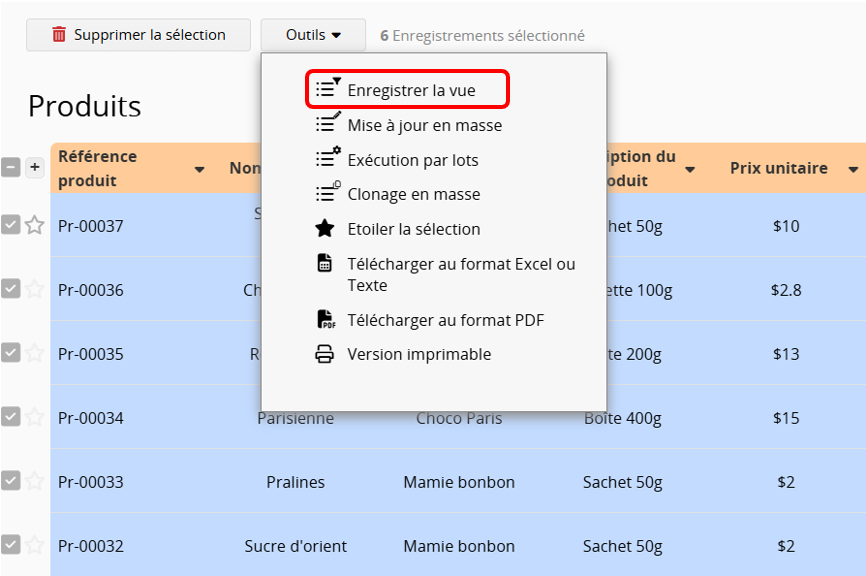 Cliquez sur Outils en haut, puis sélectionnez Enregistrer la vue.