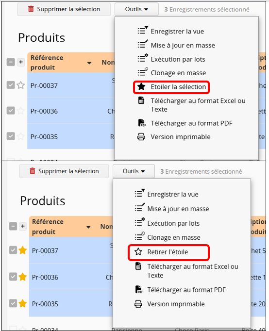Vous pouvez marquer les entrées sélectionnées comme favorites ou retirer ce marquage.