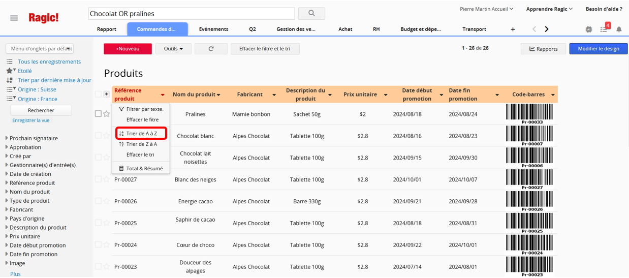 Si nécessaire, vous pouvez aussi configurer un tri par champ.