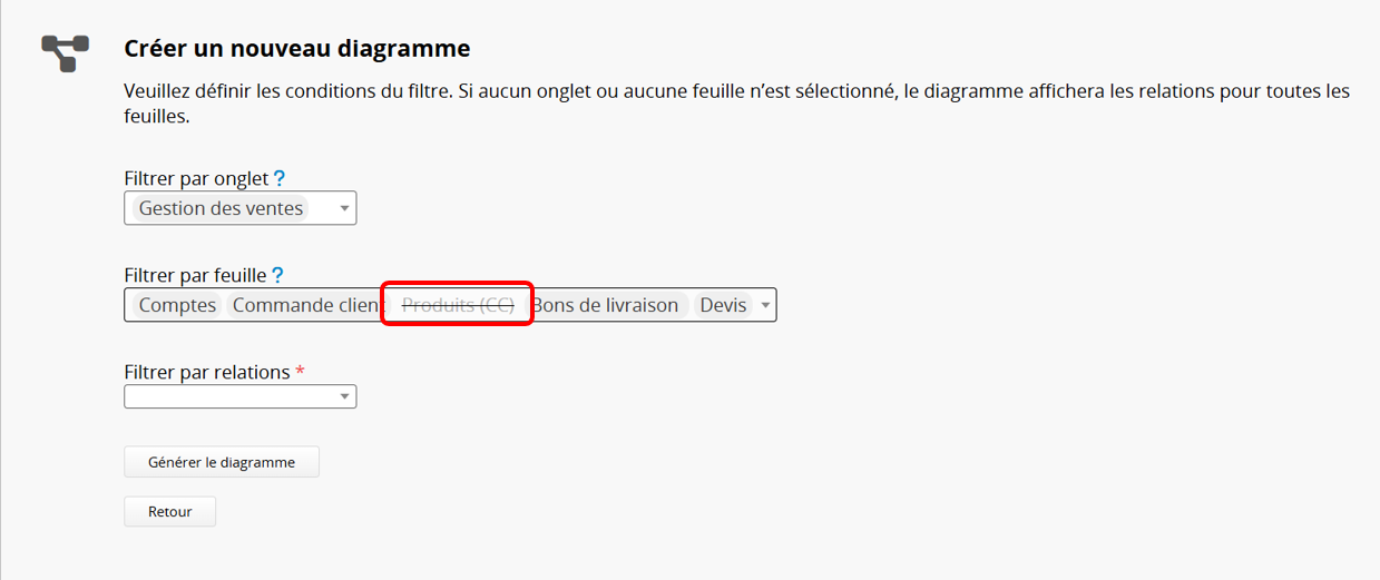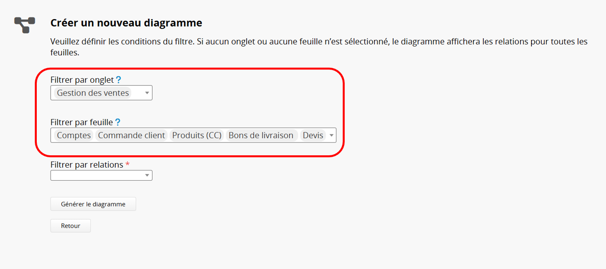 1. Seuls les SYSAdmins ont accès à la fonctionnalité Diagramme des relations entre feuilles.