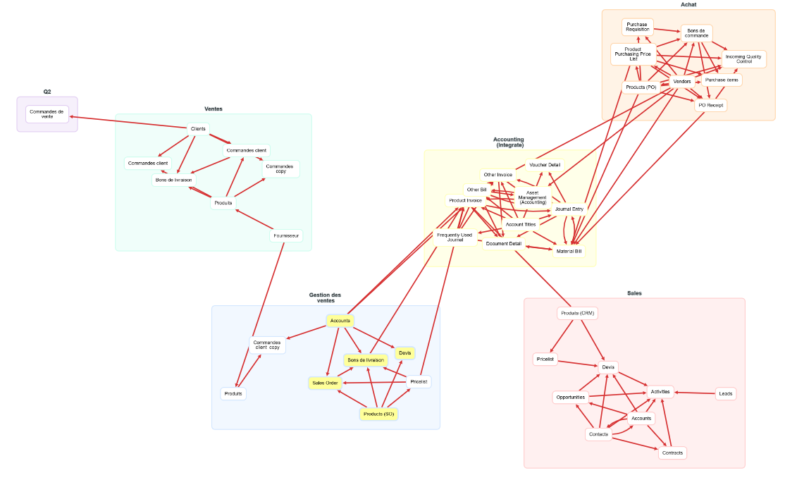 Dans le diagramme, vous verrez les feuilles filtrées, les onglets et les feuilles liées ayant des relations entre elles. Les feuilles sous différents onglets seront affichées dans des encadrés de différentes couleurs pour faciliter leur identification.