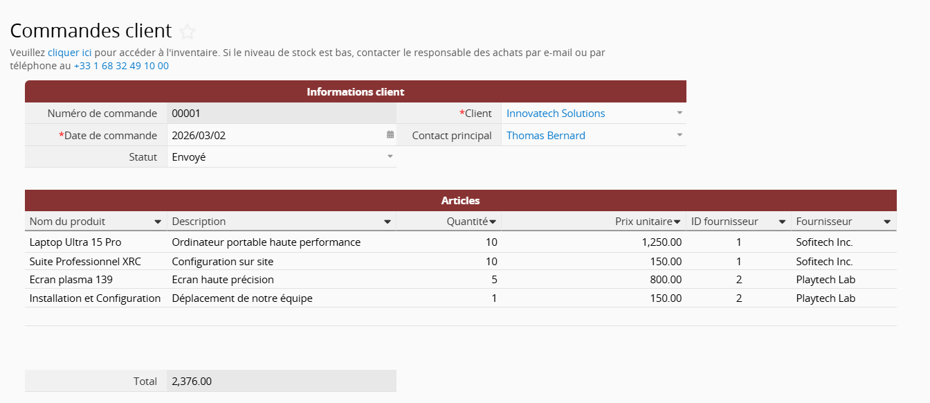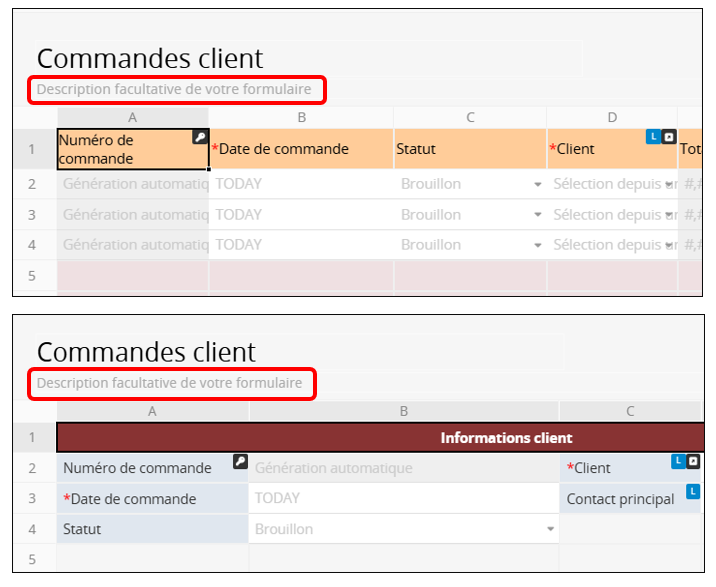 En mode design, vous pouvez définir différentes descriptions de la feuille sous le nom de la feuille sur la page liste et la page formulaire.