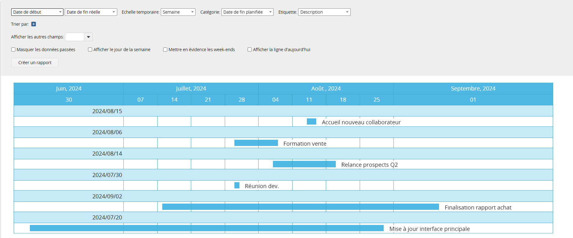 Ragic peut générer un diagramme de Gantt à partir des données que vous avez séléctionnées.