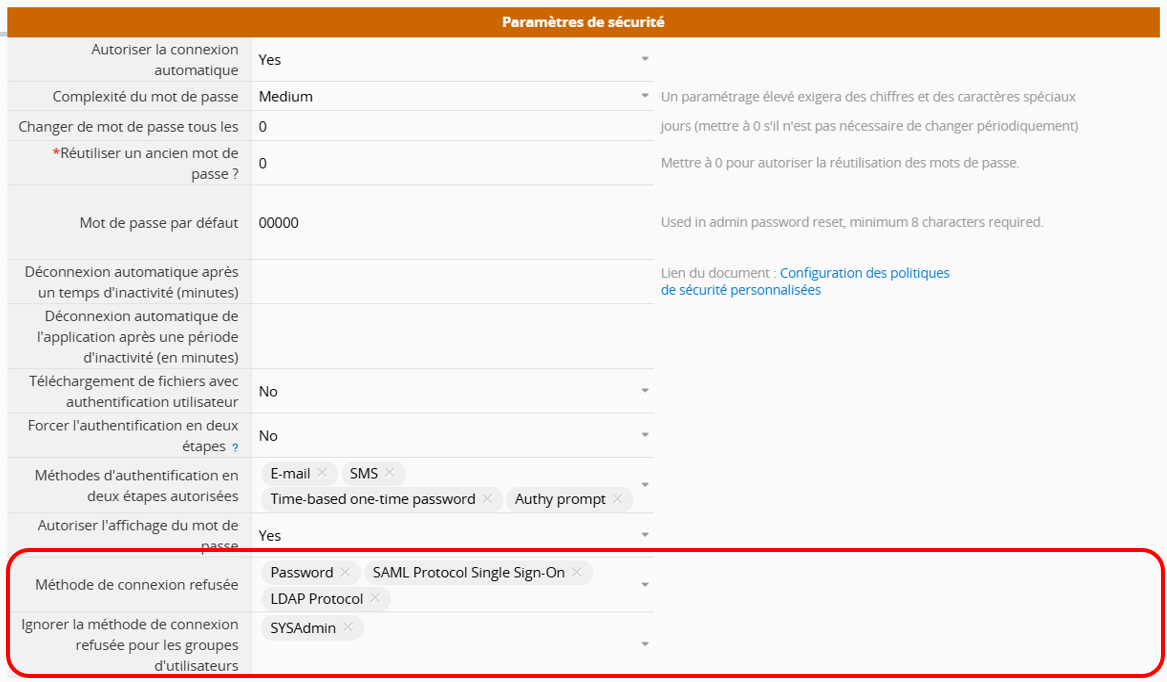 Cochez les options pour interdire aux utilisateurs de se connecter par ces méthodes.