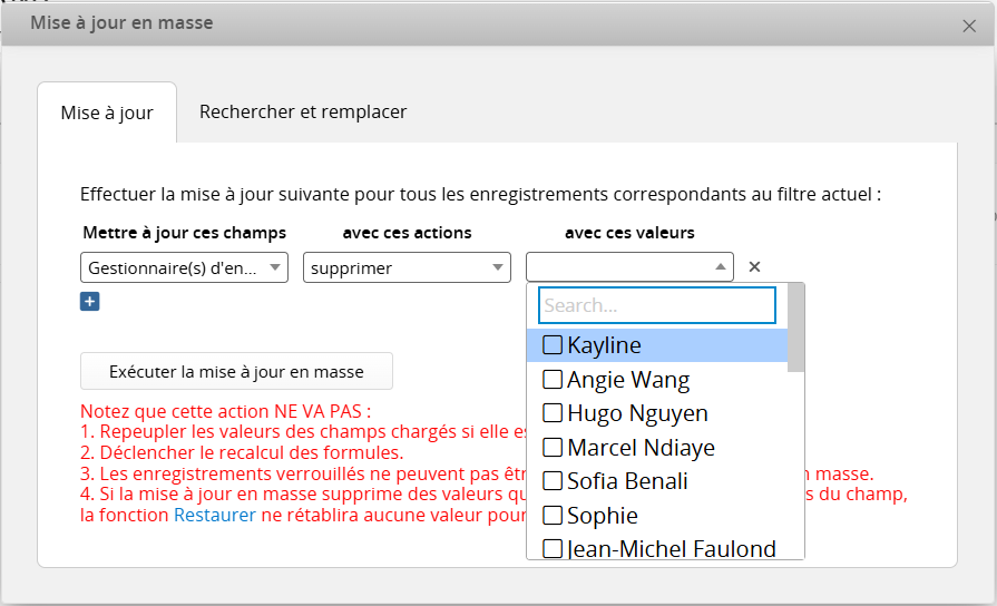 Remarque : les SYSAdmin peuvent retirer les gestionnaires d'entrées de plusieurs enregistrements à la fois en utilisant la mise à jour en masse.