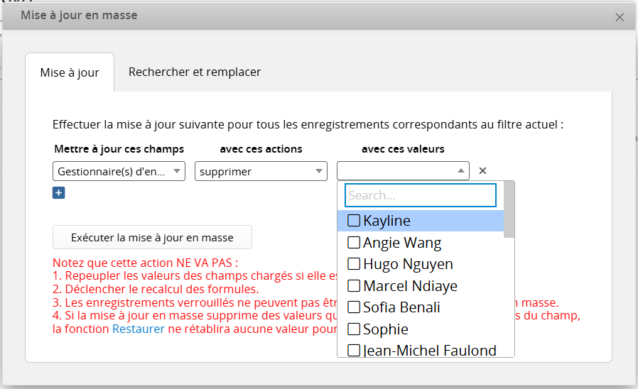 Remarque : les SYSAdmin peuvent retirer les gestionnaires d'entrées de plusieurs enregistrements à la fois en utilisant la mise à jour en masse.
