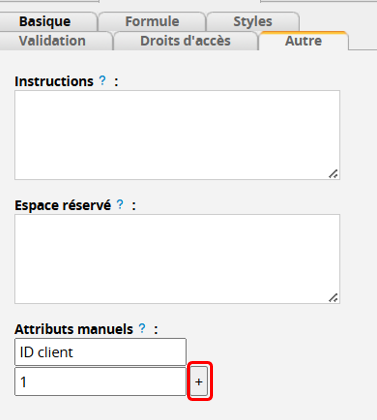 Après avoir saisi vos paramètres dans la configuration des attributs manuels, cliquez sur le bouton "+" à côté de celui-ci.
