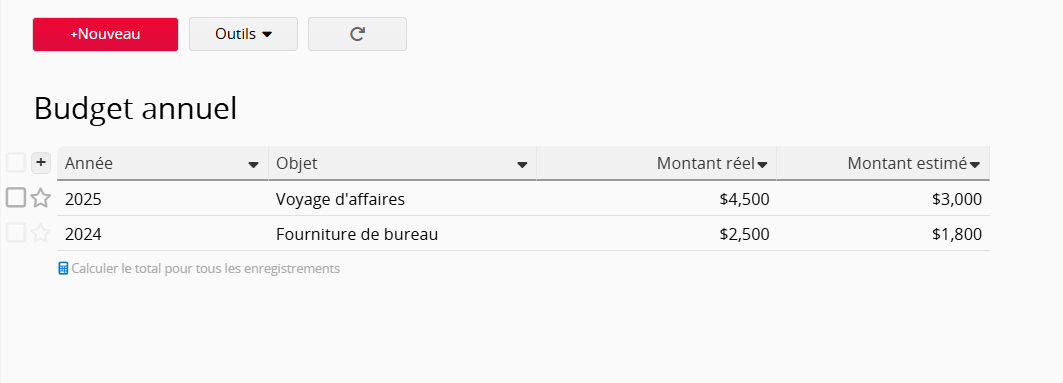 Par exemple, si vous souhaitez que les valeurs où le champ "Montant réel" dépasse "Montant estimé" aient un fond rouge :