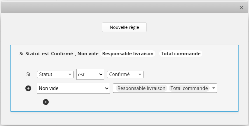 Plusieurs conditions de mise en forme peuvent être définies en cliquant sur le bouton + pour définir la règle de mise en forme conditionnelle.