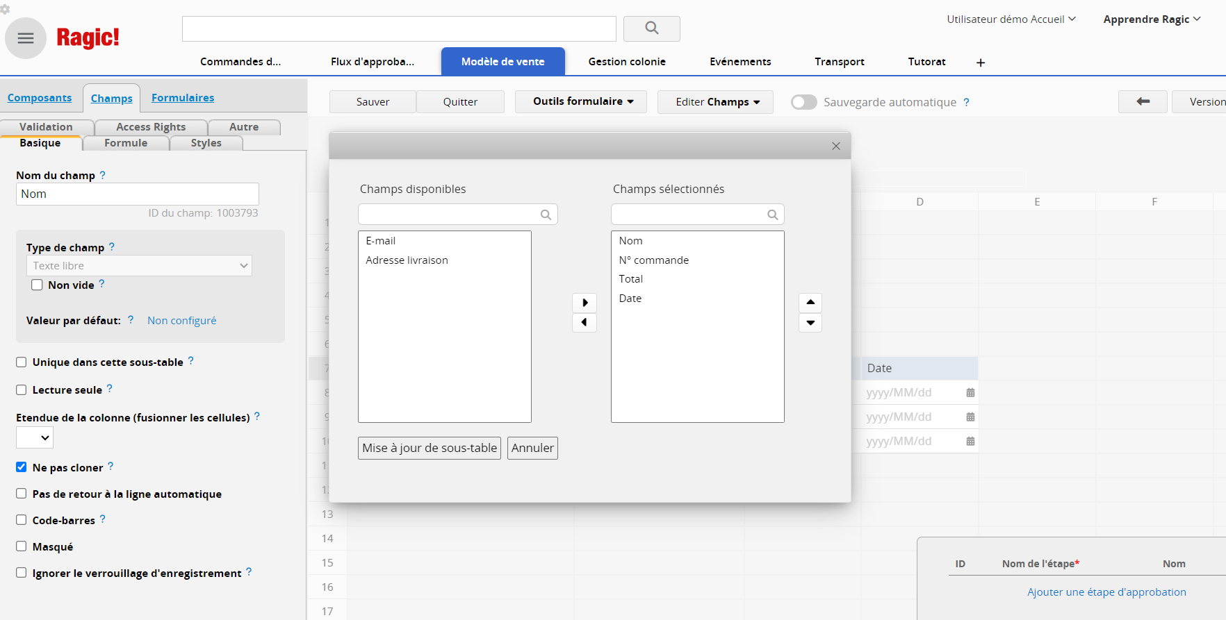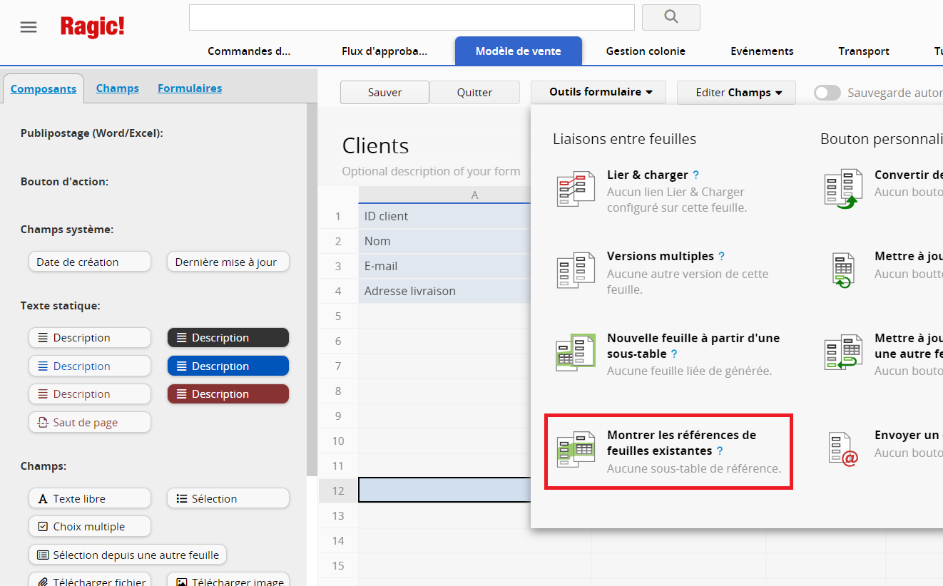 Ragic affichera désormais automatiquement, sous les champs clients, les entrées de commandes de vente leur étant associées à partir de la feuille Commandes de vente.